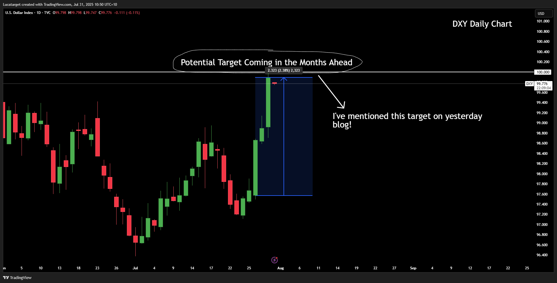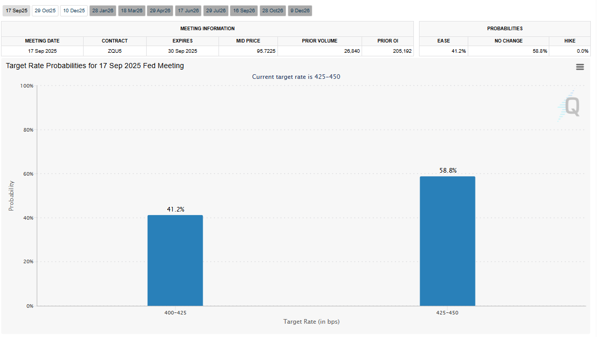 Watch for the August nonfarm payrolls (NFP), the CPI inflation print, and Jerome Powell’s Jackson Hole speech in mid-August. These events will help shape expectations ahead of the September 17 FOMC meeting.