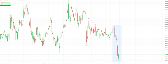Bitcoin has experienced a dramatic drop of over 10% in less than two days, driven by a combination of profit-taking, concerns over regulatory crackdowns, and broader risk-off sentiment in financial markets. A wave of liquidations in leveraged positions further exacerbated the selloff, as traders rushed to exit amid heightened volatility. While long-term adoption trends remain intact, near-term pressures could keep Bitcoin volatile as investors reassess risk appetite.