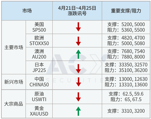 美国近期公布的经济数据表现强劲,但可能是受到关税上路前,提前拉货的支撑,上周一公布的关税豁免清单包含消费性电子和服务器产品,稍微减缓市场压力,但川普随即表示将公布半导体、药品关税,且英伟达先前为了出口中国而推出的降规版H20晶片也将受管制,显示短期不确定仍高,因此美股本周维持逢高偏空交易。