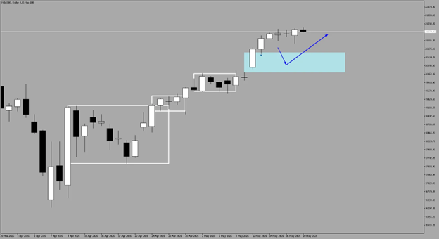 Compared to Dow Jones, Nasdaq has a stronger momentum with no signs of slowing down, yet. If Nasdaq pulls back, we could see a potential upside reaction at the Daily FVG resting at 20197.50 - 20766.90 level.