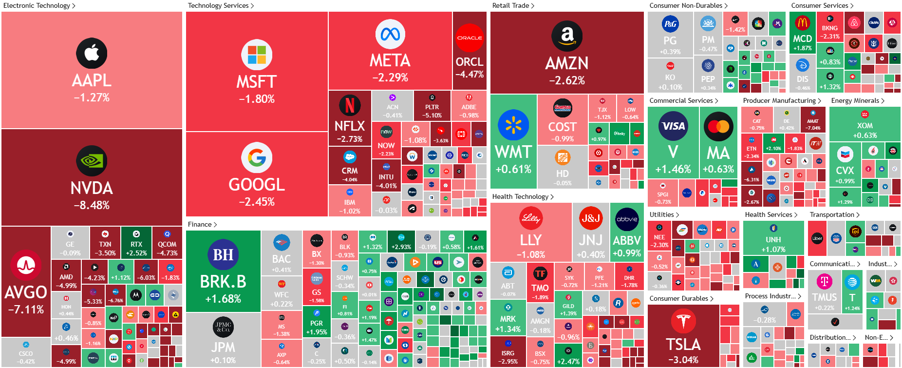 美国股市:就像昨日分析所言,英伟达财报无惊喜,盘后股价并未飙涨,“没有惊喜就是最大的利空”,这已经预示了美股昨晚易跌难涨。美股刚一开盘,科技板块遭受重创,尤其是在特朗普两次提及要对欧盟实施对等关税后,科技板块加快崩溃速度,七大科技巨头无一幸免。不过其他板块倒是好坏参半,美债利率下行(美盘)刺激了金融与地产板块,令其逆势上涨。油价受消息面大涨,也让能源板块表现优异。美国三大股指中,纳指最差,道指跌幅相对较小。