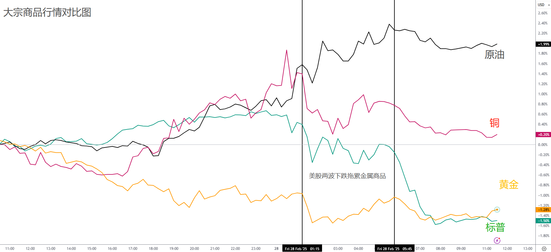 大宗商品走势较为混乱。欧盘期间,原油与铜上涨,而黄金因美债利率上升承压下跌。进入美盘后,市场趋势逐渐明朗,美股大跌拖累金属类大宗商品下行。同时,OPEC消息称四月增产计划可能难以落实,推动油价持续走高。