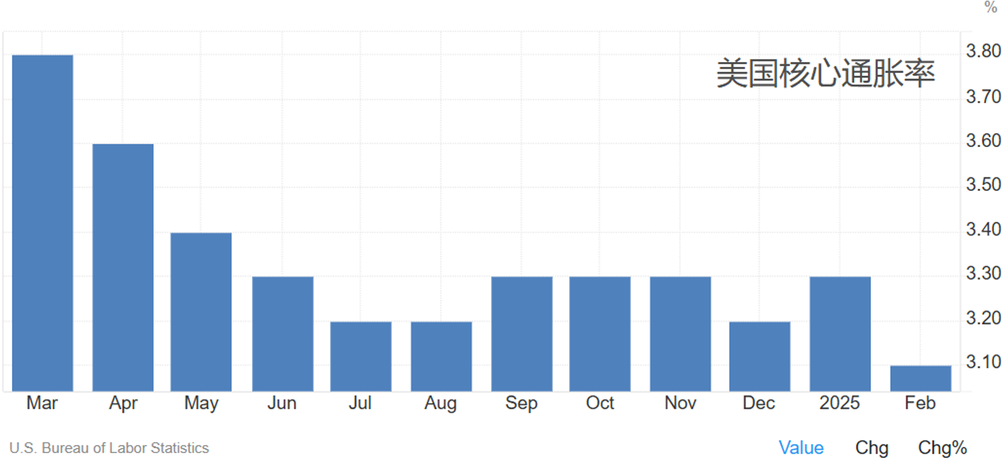 目前市场上存在两种截然不同的观点:一方面,以财长贝森特为代表的阵营认为通胀只是阶段性现象;另一方面,华尔街部分机构及美联储内部人士则认为关税可能对通胀构成更持久的上行压力。不过,从最新公布的通胀数据来看,美国核心通胀仍处于缓慢下行阶段,暂未显示明显风险。