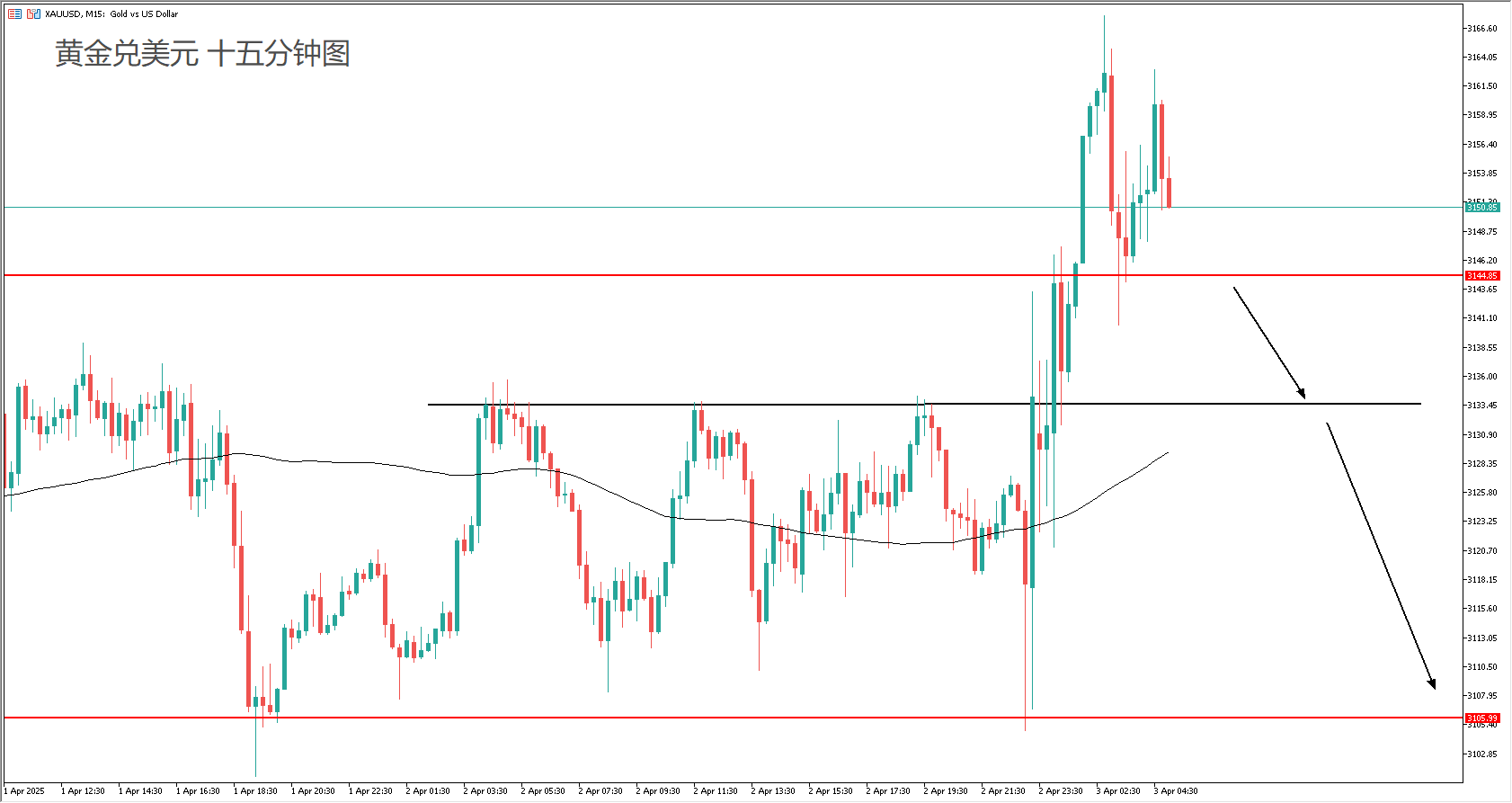 技术面:100均线向上,关税消息令金价突破前高,空单要设好止损。现价在3160附近受阻,还未形成头部反转。交易策略应该等待价格跌破头部颈线后再行入场跟空。