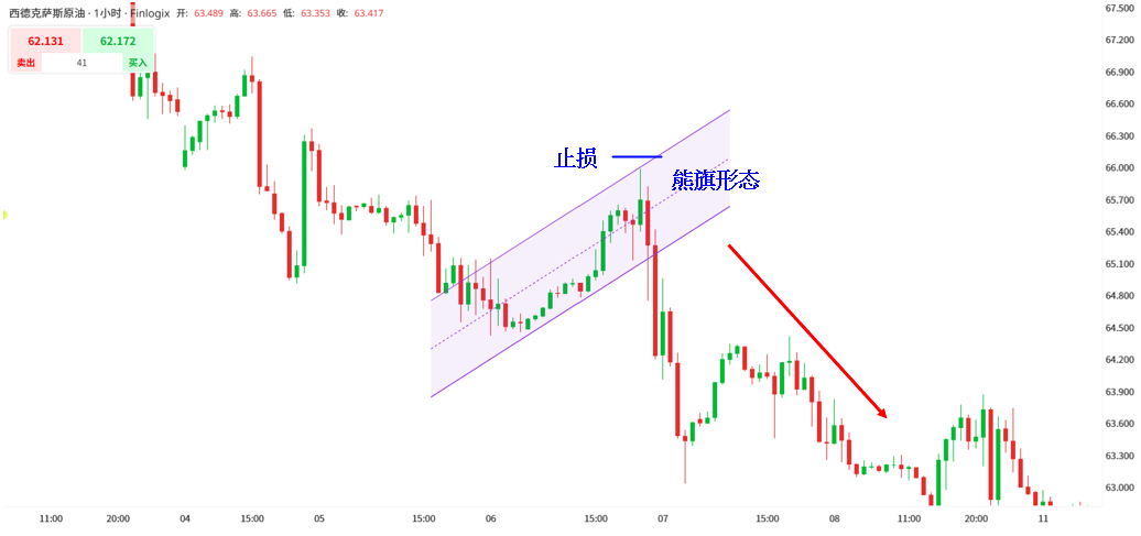 这种形态说明卖压依旧存在,价格只是暂时反弹。熊旗更常见于短周期图表(如M15、H1),因为其发展速度较快。