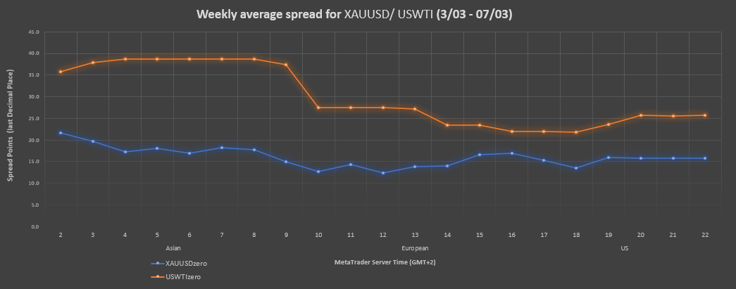 USWTI在亚盘时段的点差处于“良好”水平,然后在欧/美时段提升至“优秀”水平。