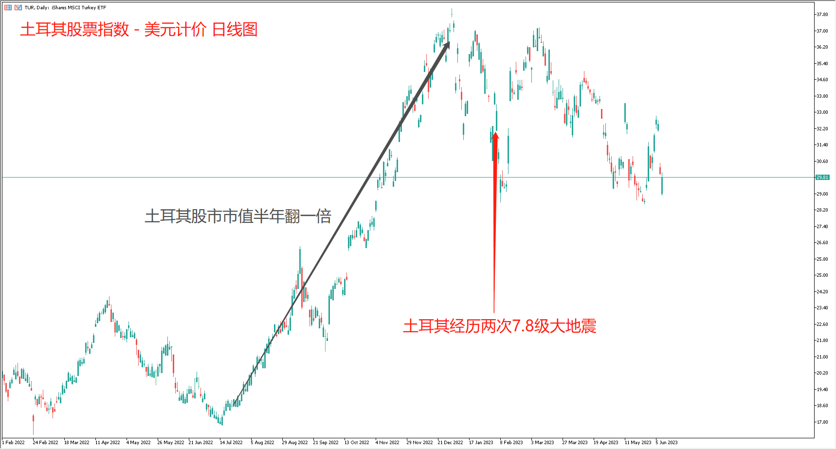 现在土耳其资产市场已经和经济完全脱轨。就拿今年来说,2月初土耳其经历两次大地震,房屋倒塌,死伤无数。然而土耳其的股市却神奇地屹立不倒,不到一周便开始大幅转涨。货币的“泛滥”已经让金融市场的定价能力完全失效。除非能够像希腊债务危机那时候一样,得到欧盟大规模的支援,市场才有重启的可能。然而已经陷入技术性衰退,自身难保的欧盟又哪管得了这个“邻居”的死活。