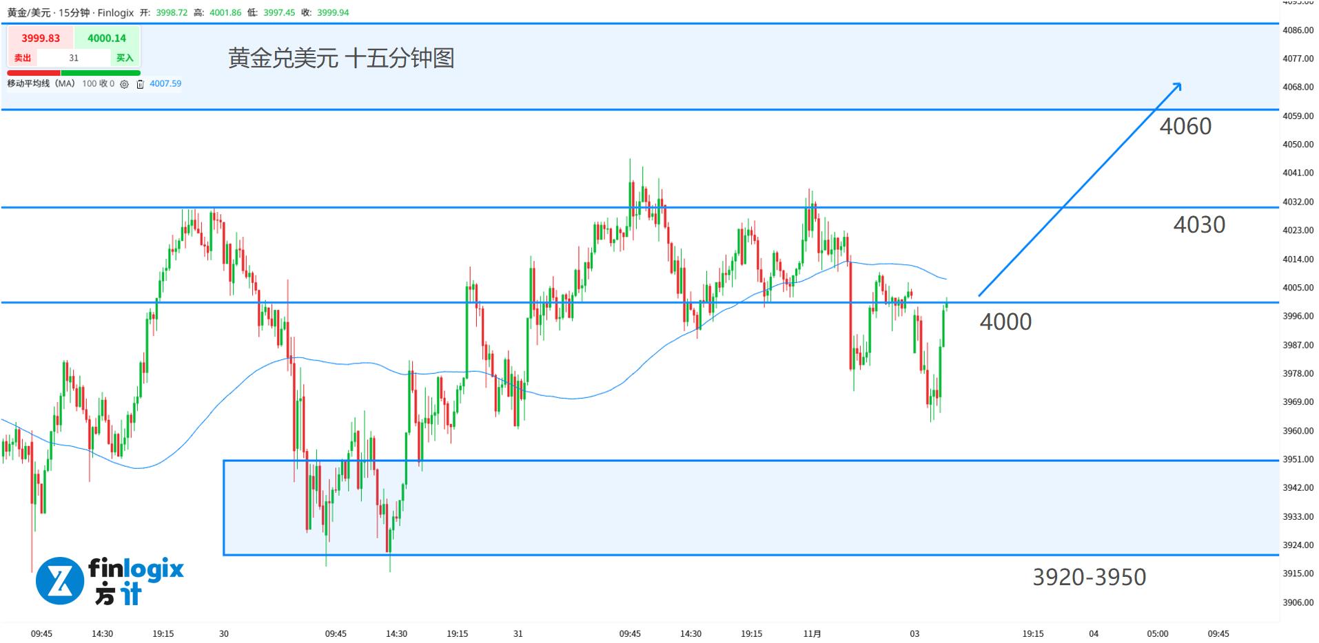 阻力参考:4000(突破);4030(突破&止盈);4060-4080