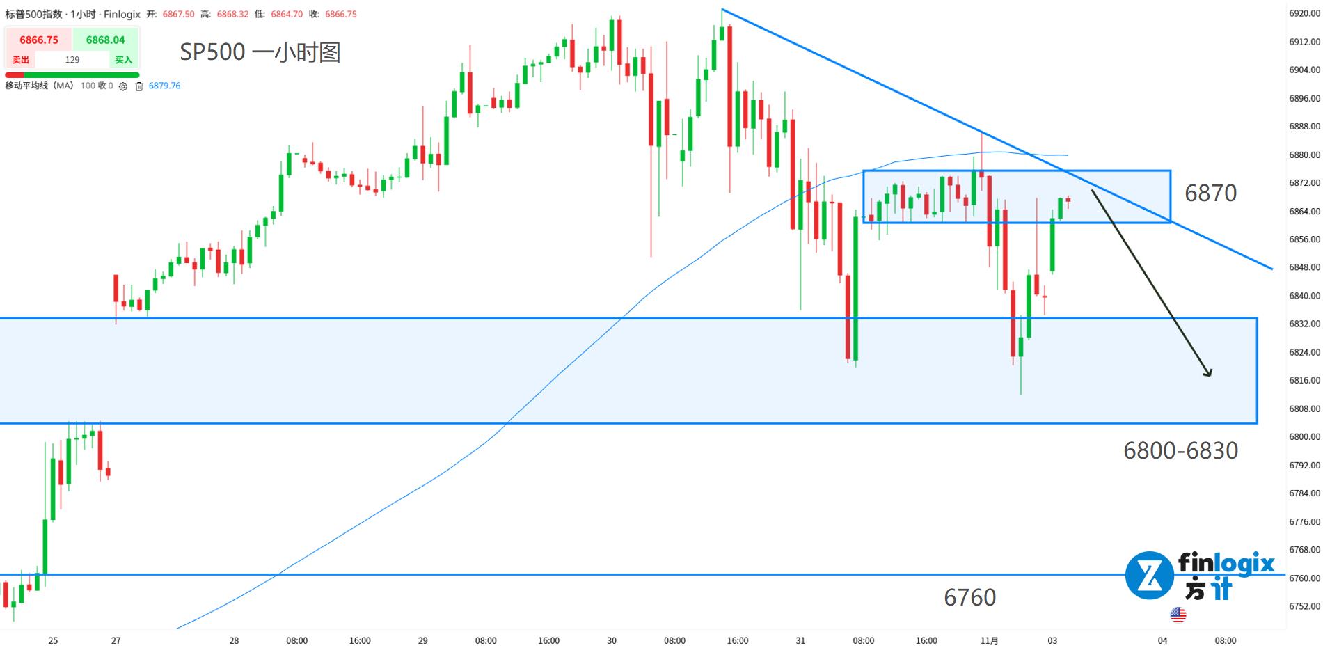 阻力参考:6870;6890(突破止损)