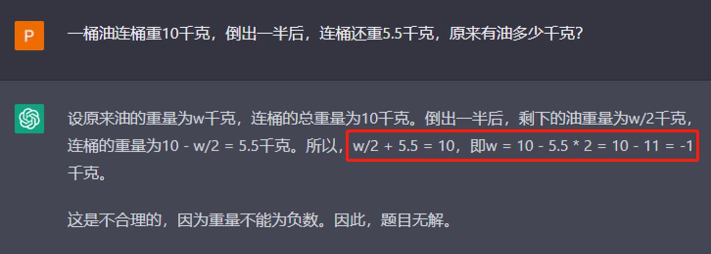 不过现阶段的ChatGPT并非完美无缺。首先最大的问题在于其给出的所谓“答案”并非绝对的正确,只是符合多数人的语言逻辑与习惯。由图可见,在回答一道小学奥数题,ChatGPT给出的初始公式没有错,但在变项的时候却犯了小学生的错误,没有加括号,导致最终结果出错。这是因为像ChatGPT这种大型语言生成AI,本质上是模仿而非计算。它更像是一个政客,能将语言组织得更有说服力,但无法保证信息的准确性。ChatGPT的另一个问题是中文稳定性相对较低,不过这个问题最近已经有了很大的改善。