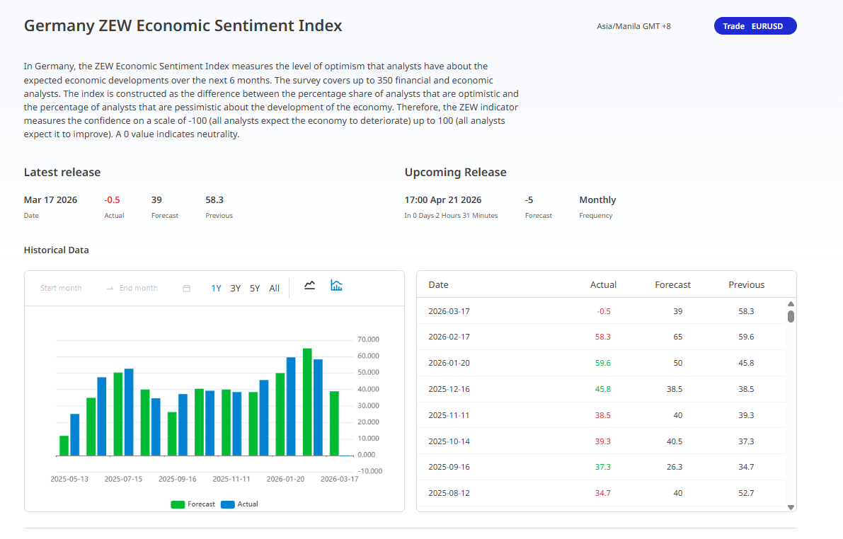 This indicator measures how optimistic 350 top financial experts view about the economy for span of 6 months. If today's number higher than -6.7 to -10.0 forecast, Euro usually rallies if it is lower, expect the currency to drop toward 1.1700.