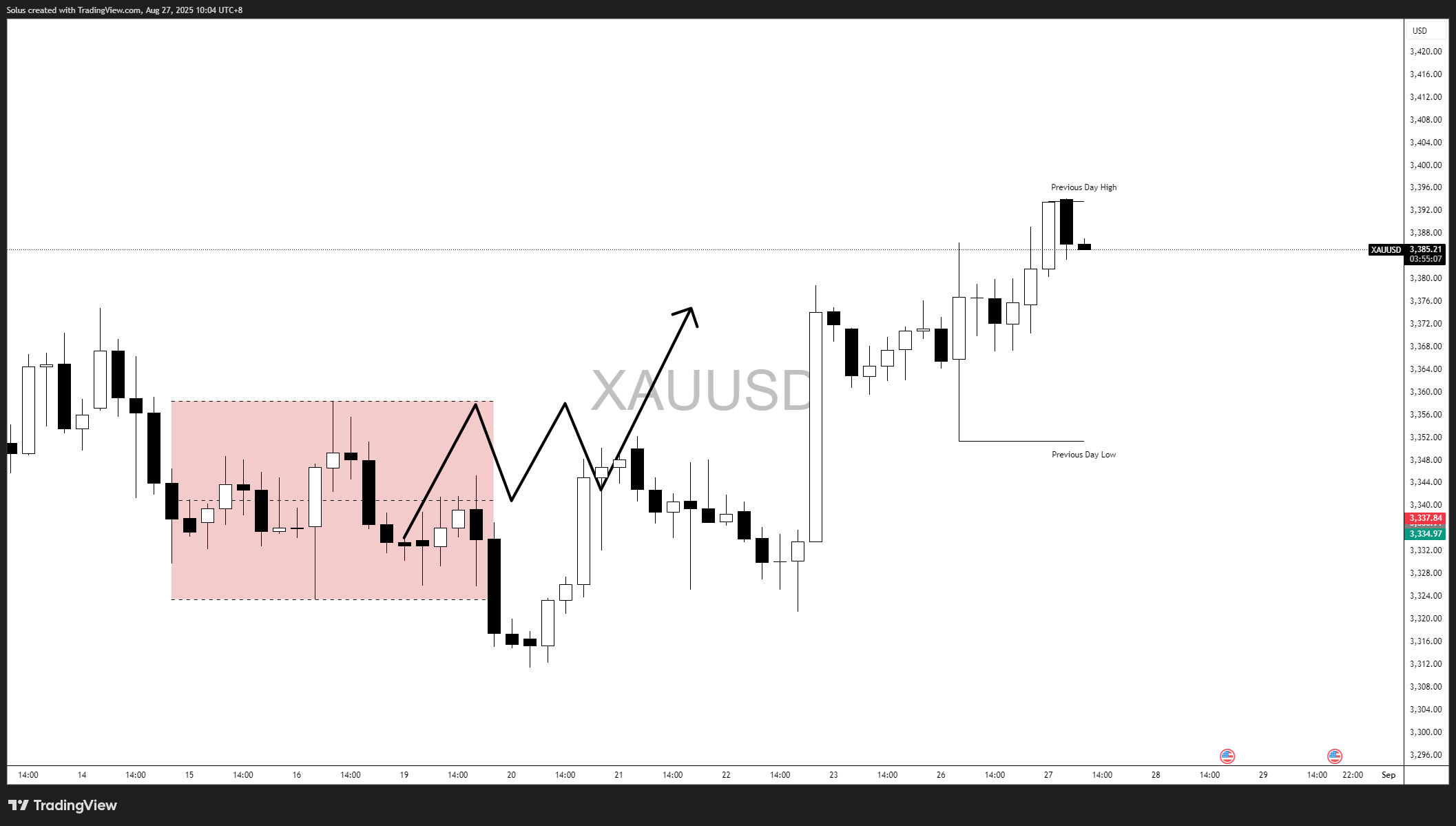 In last week’s analysis, Gold Forecast: Jackson Hole Breakout or Breakdown?, we highlighted the two scenarios: a clean break above $3,335–$3,360 would open the path to higher liquidity pools, while failure would risk a deeper pullback.