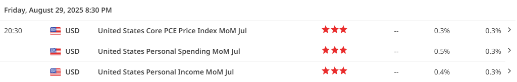 This week’s gold technical analysis confirms how the Jackson Hole breakout forecast materialized. Now, with XAU/USD trading just shy of the $3,400 psychological barrier, the market is in balance mode. Whether it extends toward $3,480 or rotates back into the FVG will likely depend on Friday’s Core PCE release, which traders see as the decisive input for September’s Fed meeting.