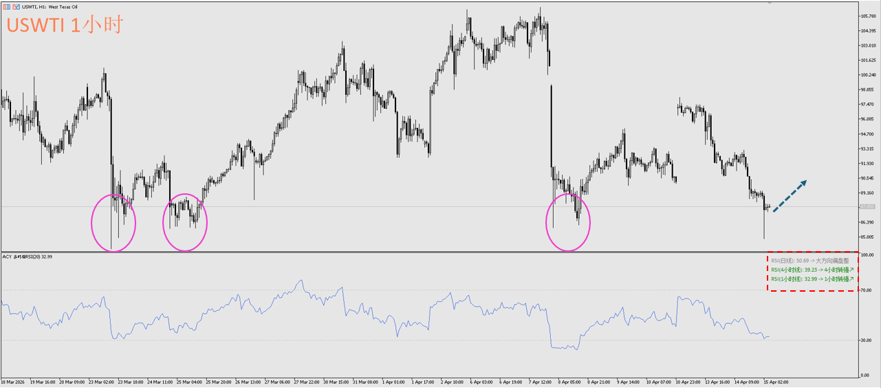 技术面:昨天油价如预期有短空的空间,回到当前,透过ACY独家指标<多时框RSI>同步观察日线、4小时线以及1小时线的RSI变化,能够发现大方向偏盘整,而4小时线与小时线则开始有转强的态势,加上当前这个位置是过去4周的相对低位,因此考虑现价到86,有考虑做多的机会。