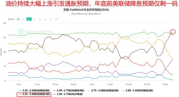 美国股市三大股指全线收跌,市场风险偏好受到持续冲击。道琼斯指数重挫近800点,跌幅达1.61%,收报47954.74点,抹去了今年以来的全部涨幅。标准普尔500指数下跌0.56%,纳斯达克综合指数跌幅相对较小,微跌0.26%。股市大跌的主要原因是中东战事不断升温,导致美国原油期货价格突破每桶80美元,加剧了市场对通胀反弹的担忧,并推动美国10年期国债收益率连续走高。市场预期通胀压力将使美联储今年的降息幅度大幅缩减。尽管大盘承压,但能源股和部分科技股限制了纳斯达克的跌幅。其中,博通(AVGO)因看好人工智能芯片收入大涨4.8%,英伟达(NVDA)也录得微涨。临近尾盘,因传出美国政府考虑采取措施控制油价,股指从盘中低点略微反弹。