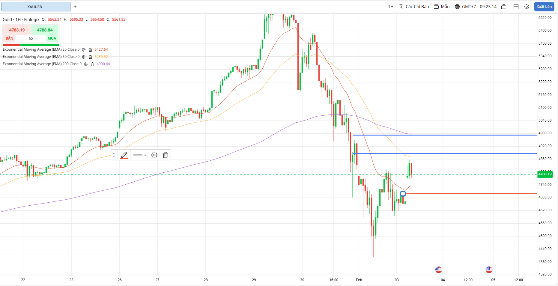 👉 Chờ Mua khi giá hồi phục lại phạm vi 4675 -4700