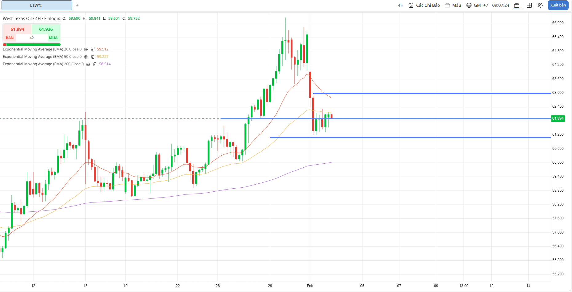 Hỗ trợ: 61.0 (mức mục tiêu); 60.3