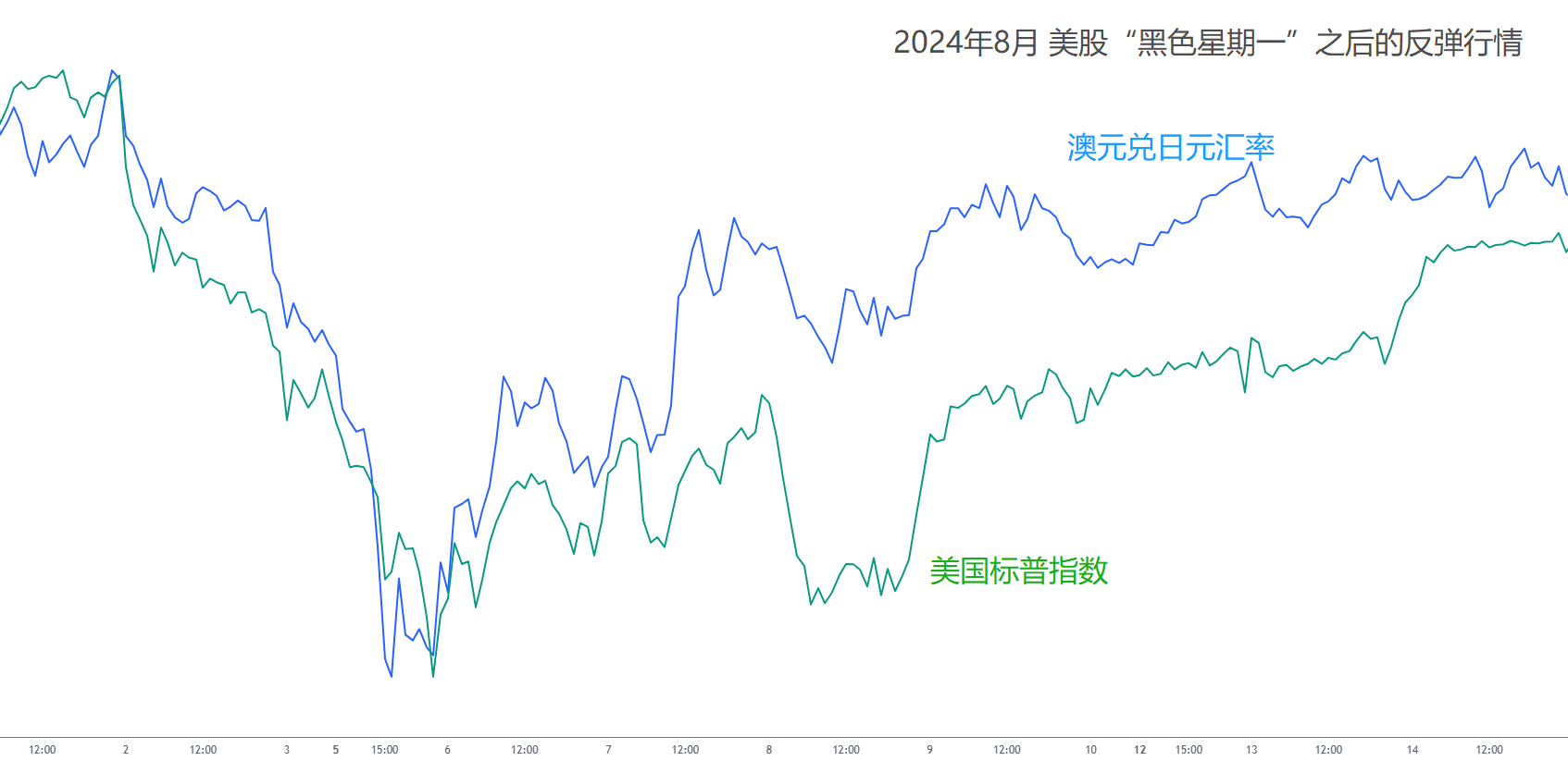 即便不做多美股,也要关注与做多美股相关的交易。日内交易中最值得关注的是澳元兑日元的看涨。美股一涨,澳元涨最多,日元跌最凶,因此波动幅度是所有主流货币对中最大的。这种情况在去年8月也出现过。由图可见,相比美股的反弹,澳元兑日元的上涨更具有稳定性,更适合跟随看涨。