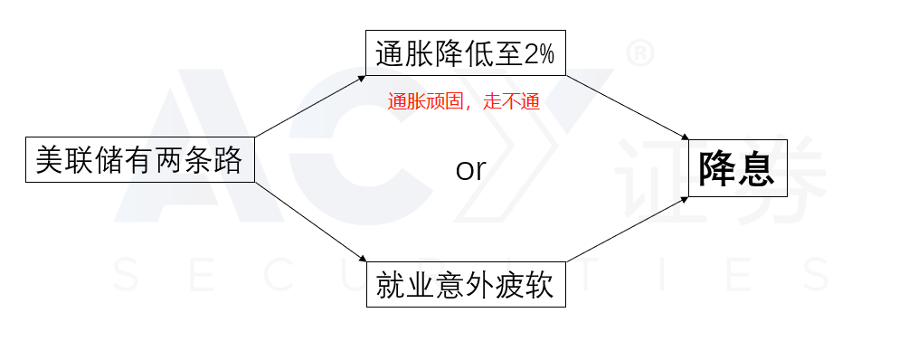 其实就在上周四,美联储主席鲍威尔在利率决议发布会中首次提到,美联储有两条降息的路径,一条是通胀降至2%的目标,但由于通胀连续三个月反弹,这条路明显走不通了;另一条路便是就业意外疲软,因为就业疲软往往意味着经济活动已经陷入衰退的边缘。这并非是鲍威尔的心血来潮,而是西方国家普遍遵循的降息规则。