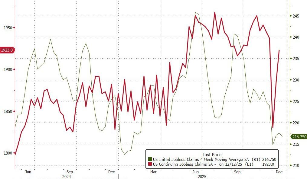 Trong khi đó, số người tiếp tục nhận trợ cấp tăng lên 1.923 triệu, cao hơn mức 1.885 triệu của tuần trước.