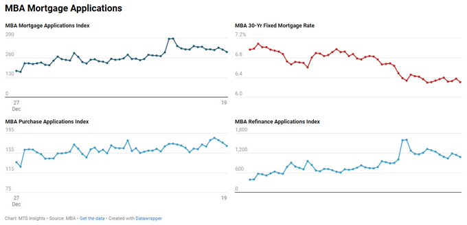 Trong tuần qua, lãi suất vay thế chấp 30 năm ghi nhận mức giảm nhẹ, từ 6.38% xuống còn 6.31%. Song song đó, số lượng đơn xin vay tiếp tục suy yếu khi giảm 5.0% so với tuần trước, cao hơn mức giảm 3.8% đã được ghi nhận trước đó. Những diễn biến này cho thấy thị trường tín dụng nhà ở đang có dấu hiệu chậm lại, dù mức lãi suất đã hạ nhiệt đôi chút.