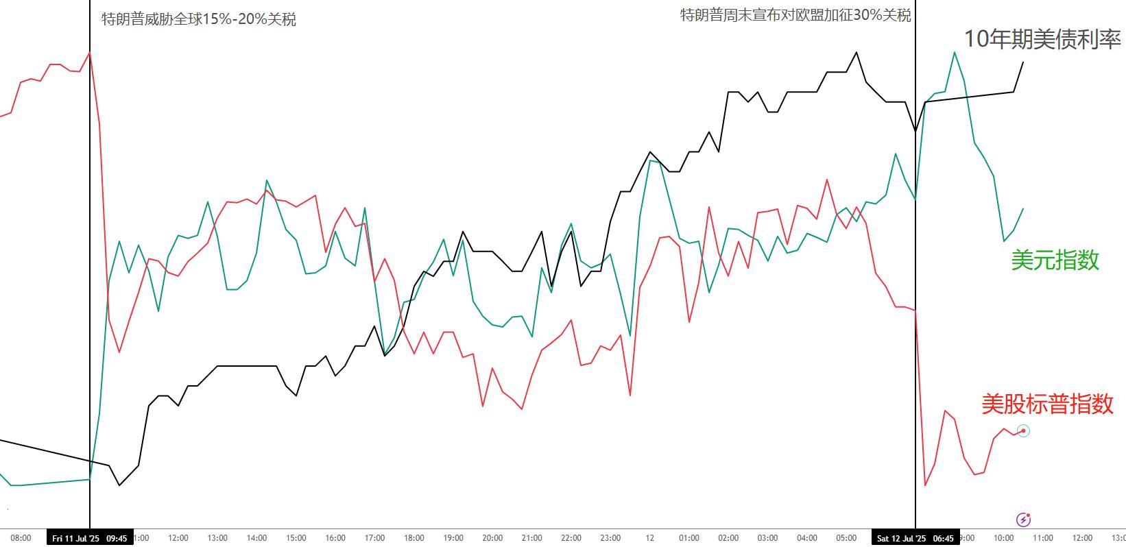 关键行情发生在特朗普关税消息面上。上周五早盘,特朗普威胁全球15-20%关税,而周六晚间,特朗普又对20个国家威胁高额关税,其中欧盟关税达到了30%。
