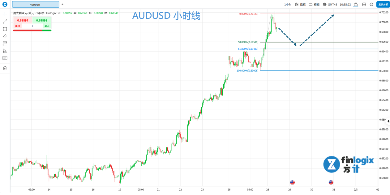 交易策略:回踩0.6945~0.6960区间企稳后,考虑做多。