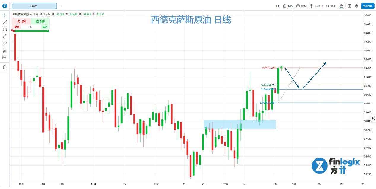 交易策略:回踩到61~61.3区间企稳后,考虑做多