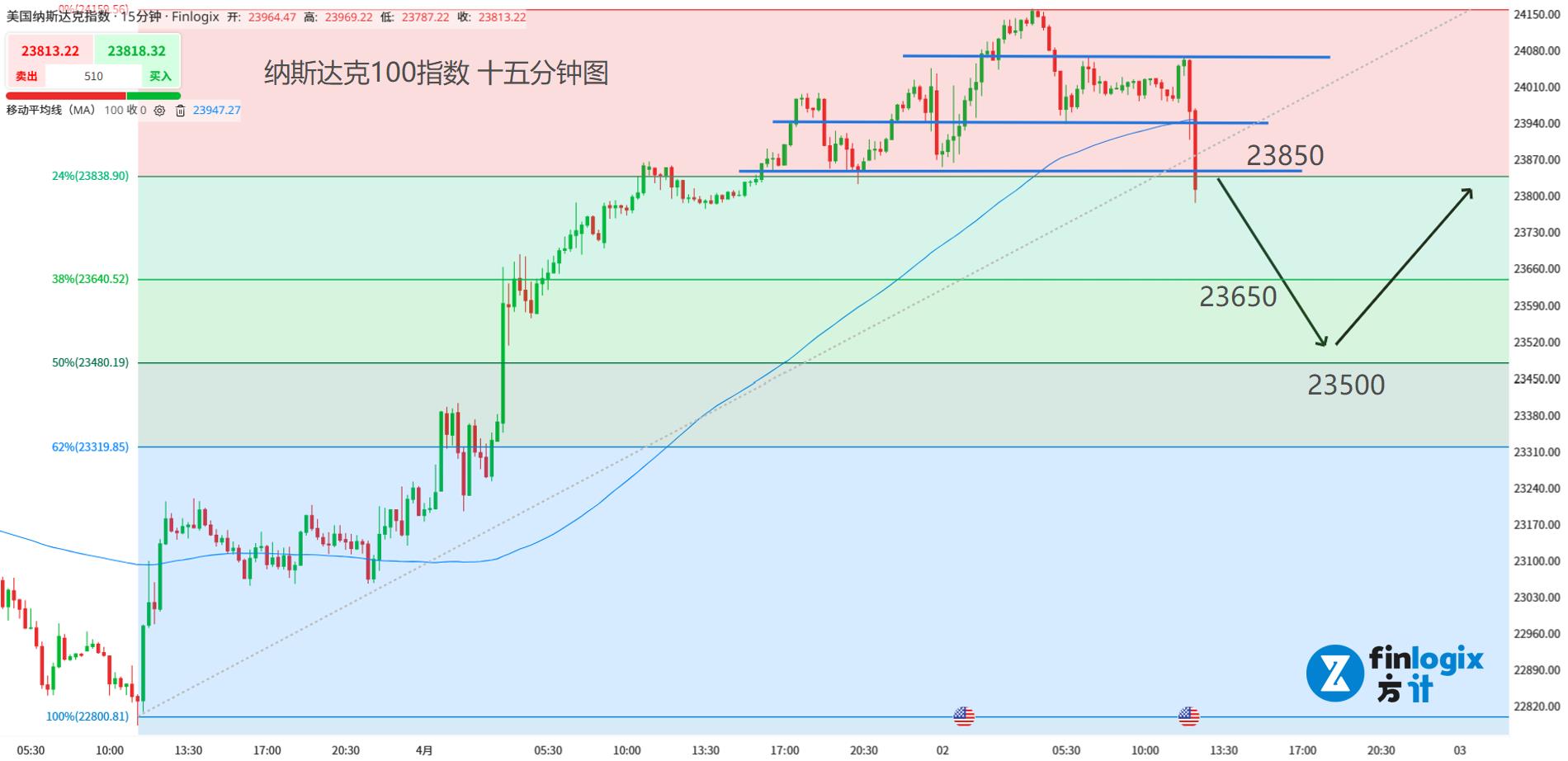 技术面:日内利多出尽的反转行情,可以配合斐波那契回调线判断情绪面回吐幅度,关注0.618和0.5回调线。
