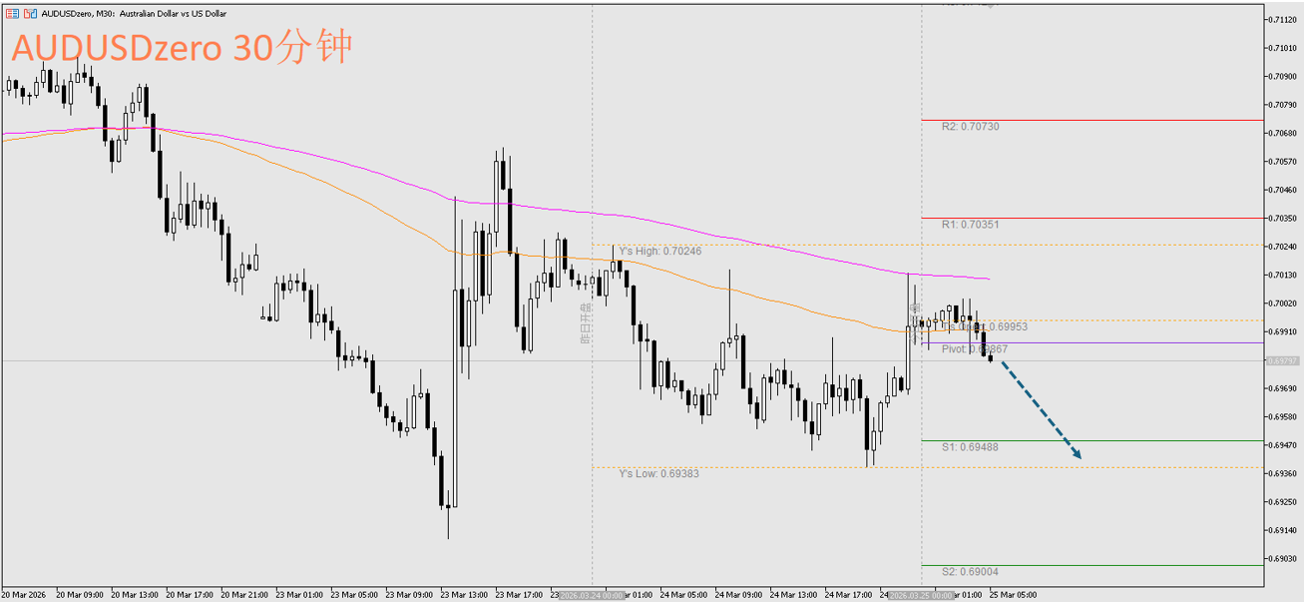 澳元兑美元汇率呈现震荡走低后小幅企稳的格局,纽约尾盘微跌0.23%至0.6992至0.6997附近。澳元走势近期主要受到两股相反力量的拉扯与博弈。一方面,由于中东地缘政治紧张局势持续,市场避险情绪被重新激发,推动资金涌入美元,对风险敏感的澳元构成了明显的下行压力。同时,澳大利亚国内疲软的宏观数据也进一步拖累了汇价。最新公布的数据显示,受服务业大幅下滑的影响,澳大利亚3月综合PMI初值骤降至47,跌入收缩区间并结束了此前连续18个月的扩张态势,加剧了市场对该国国内需求走弱的担忧。另一方面,澳元的跌幅受到国内加息预期的托底支撑。目前市场正密切关注即将公布的澳大利亚2月份CPI数据,预期整体通胀将同比持稳于3.8%。如果通胀数据符合或高于预期,将大幅加强市场对澳洲联储在5月会议上连续第三次加息25个基点至4.35%的预期。
