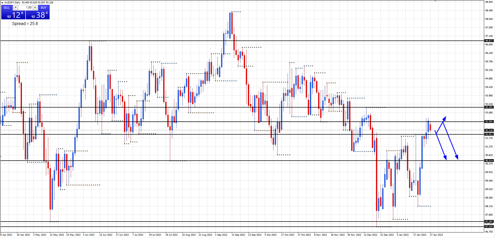AUDJPY Daily chart: