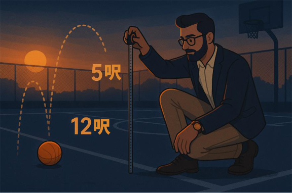想象一个篮球砸到地板上: