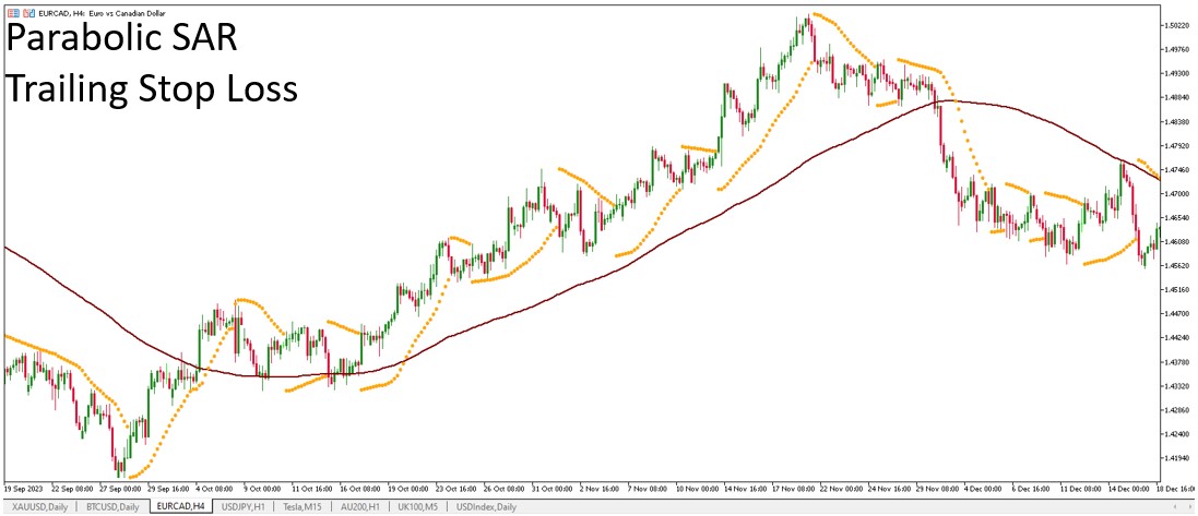 The Parabolic SAR (Stop and Reverse) indicator stands out as one of the most straightforward methods for setting trailing stop losses in Forex trading.